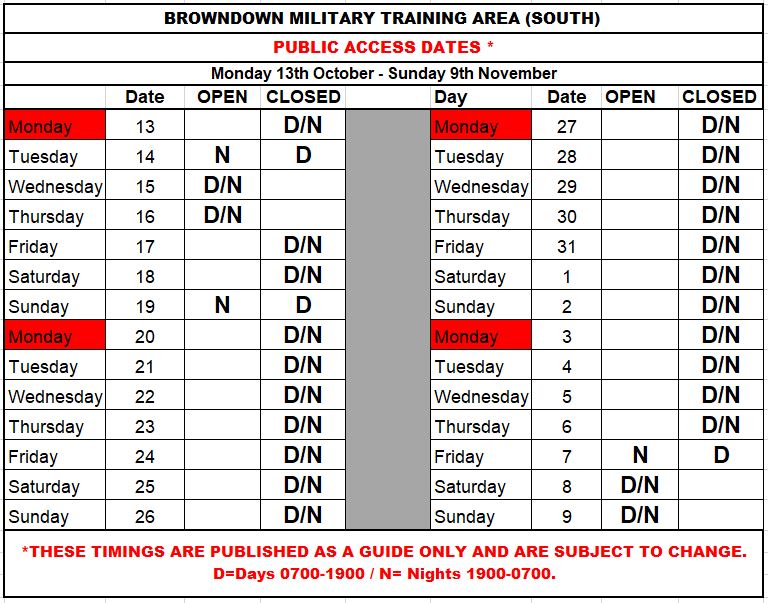 Browndown Access until 9th November
