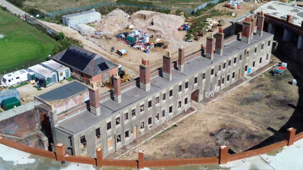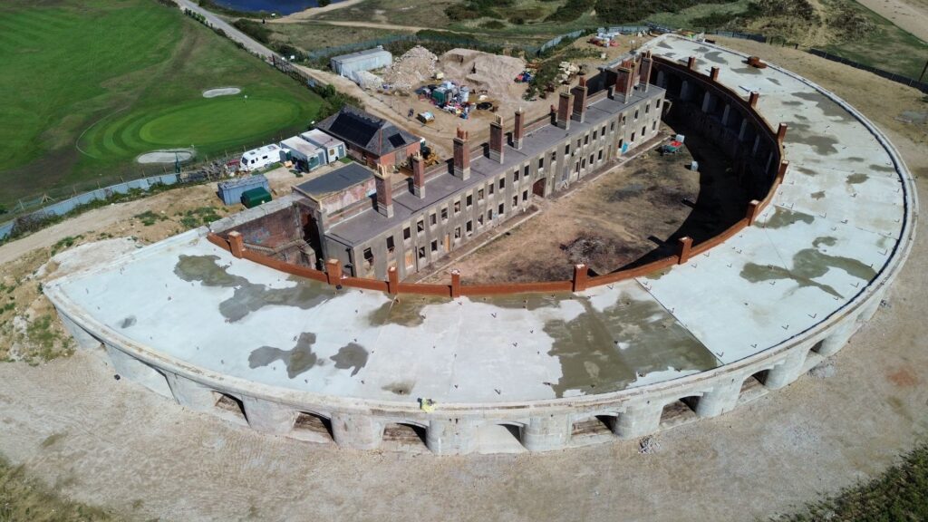 The last two photographs looking east before and after the “bank” that has been created with earth from the fort.